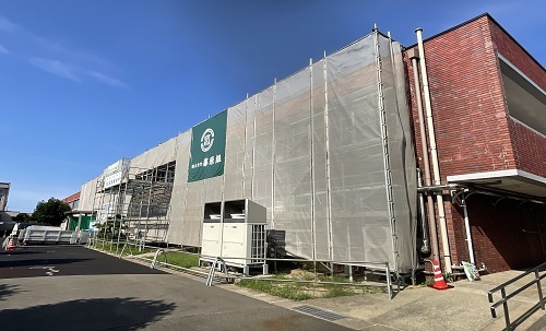 管理教室棟のアルミサッシをカバー工法で改修、既にカバー工法で改修済みのアルミサッシのガラスを複層ガラスに取替え、及び将来の新設建物により、延焼の恐れのある部分となる範囲の外部建具を防火設備に改修する工事です。